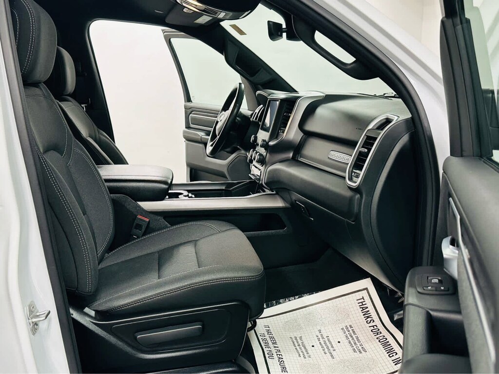 BIG HORN LEVEL 2 EQUIPMENT GROUP Google Android Auto®, SiriusXM Radio Service, Bluetooth® Handsfree Phone & Audio, USB Host Flip, Rear Window Defroster, For Details, Visit DriveUconnect.com, Integrated Center Stack Radio, ParkSense Front/Rear Park Assist w/Stop, Rear View Auto Dim Mirror, Power Adjustable Pedals, Rear Power Sliding Window, Rear Dome w/On/Off Switch Lamp, Connectivity - US/Canada, Glove Box Lamp, 4G LTE Wi-Fi Hot Spot, 115V Auxiliary Rear Power Outlet, Media Hub w/2 Charge Only USBs, Exterior Mirrors w/Heating Element, Power 8-Way Driver Seat, Auto Dim Exterior Driver Mirror, Heated Front Seats, Radio: Uconnect 5 W w/8.4 Display, Heated Steering Wheel, 8.4 Touchscreen Display, Class IV Receiver Hitch, Security Alarm, Black Premium Power Mirrors, Apple CarPlay®, Big Horn IP, WHEELS: 20 X 9 ALUMINUM CHROME CLAD, BLACK, DELUXE CLOTH BUCKET SEATS Power 8-Way Driver Seat, Bucket Seats, Manual Adjust 4-Way Front Passenger Seat, Full Length Floor Console, Rear Center Armrest, Delete LED Lamp - Floor Console Bin, Power 2-Way Driver Lumbar Adjust, TRANSMISSION: 8-SPEED AUTOMATIC (850RE) (STD), ENGINE: 3.6L V6 24V VVT ETORQUE UPG I (STD). Ram Big Horn with Bright White Clearcoat exterior and Black interior features a V6 Cylinder Engine with 305 HP at 6400 RPM*.